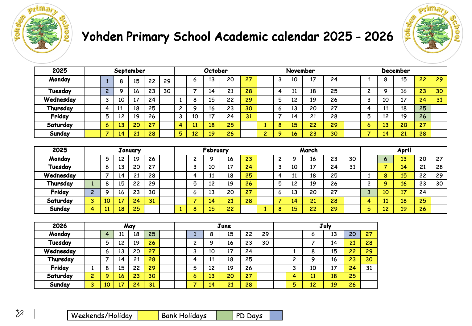 The school will inform you of teacher training days at each academic year as these will differ each year.